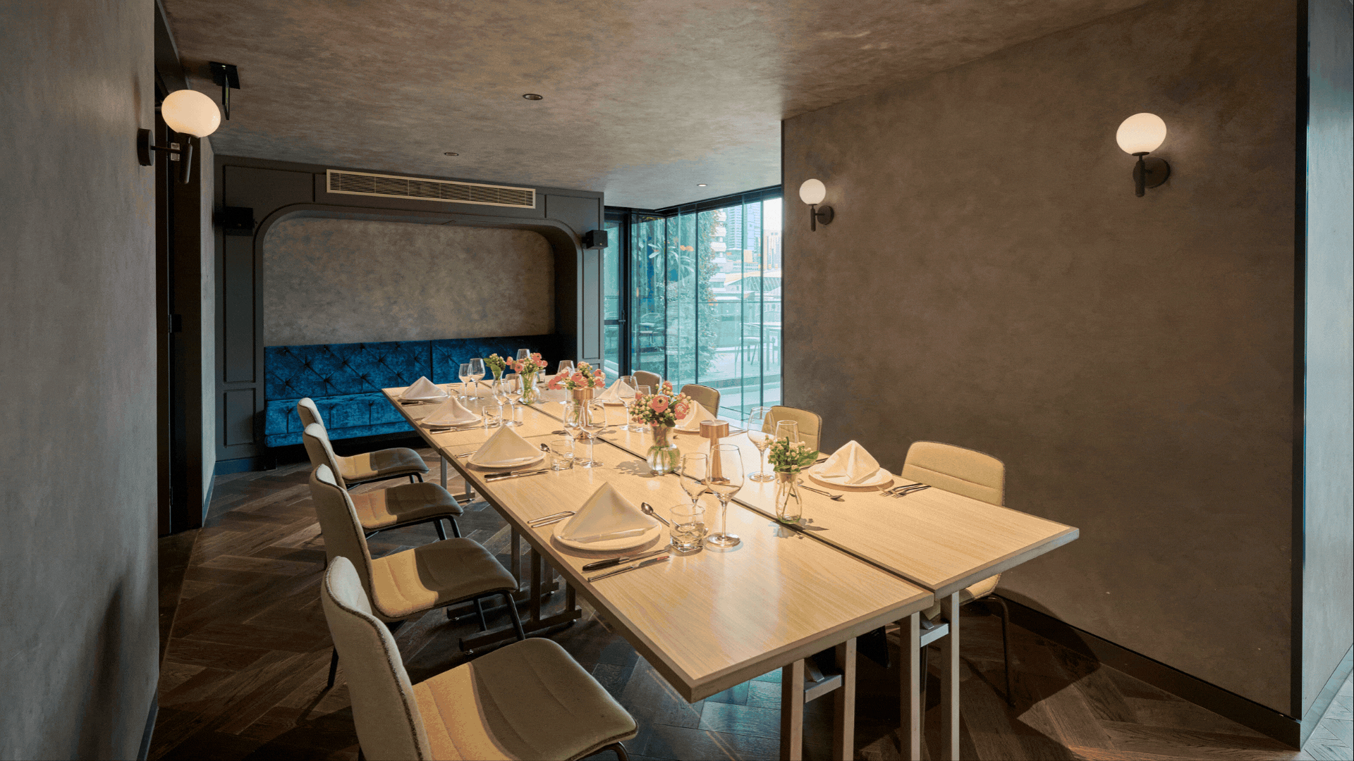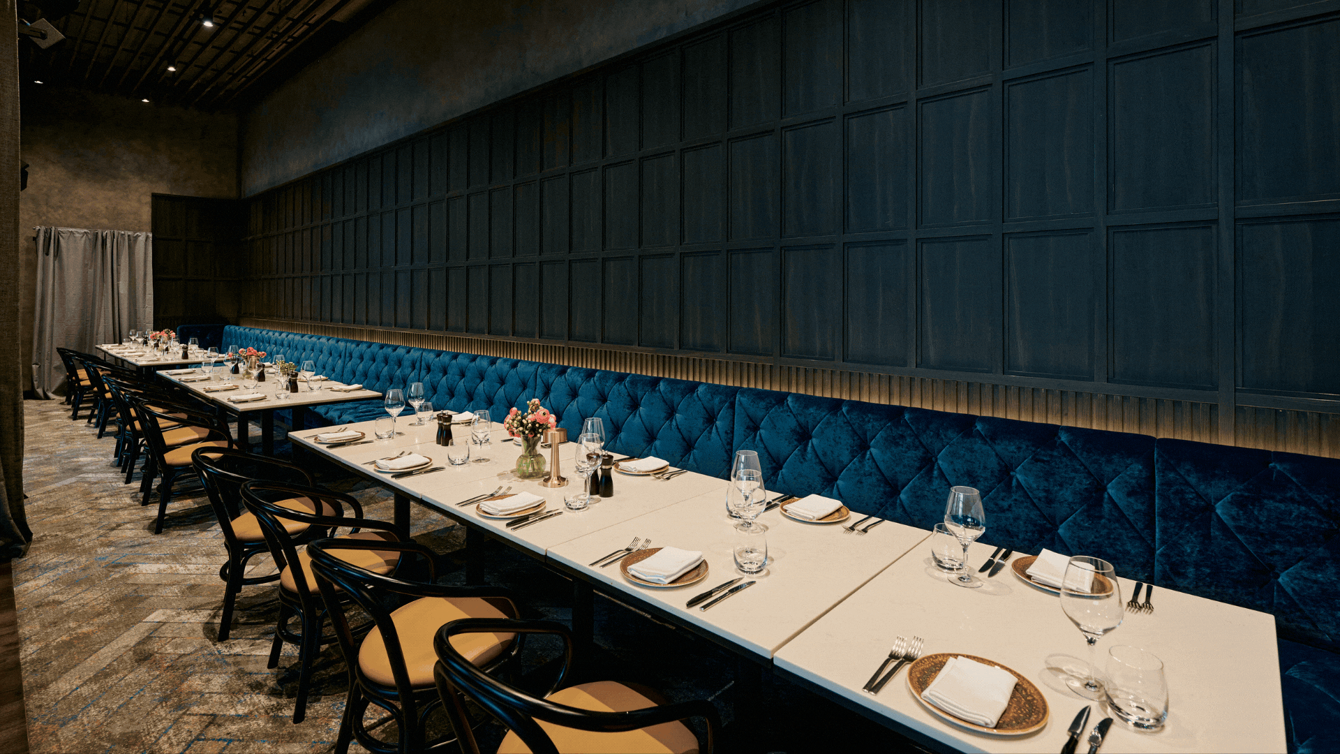 Our private room Tongs, is ideal for small events. Guests can separate themselves from the buzz of the restaurant with automatic curtains while meeting or hosting a creative party.