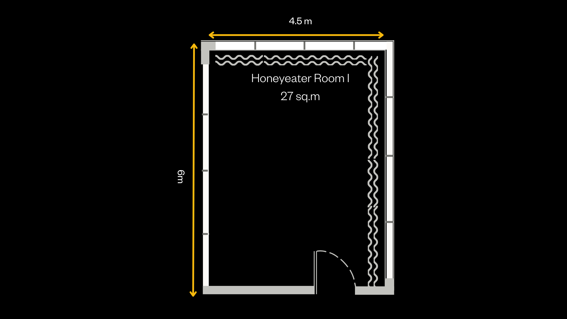 Honeyeater room 3 is our largest of the Honeyeater Rooms with a footprint of 34sqm. This versatile space has plenty of natural light and can be set up in a range of layouts.